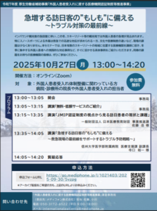 令和7年度厚生労働省補助事業「外国人患者受入れに資する医療機関認証制度等推進事業」オンライン説明会(第1回)のご案内について